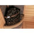 • Вертикальное размещение камней позволяет менять характер тепла в зависимости от подачи воды: сверху для интенсивного горячего парения и сбоку для мягкого и легкого пара.